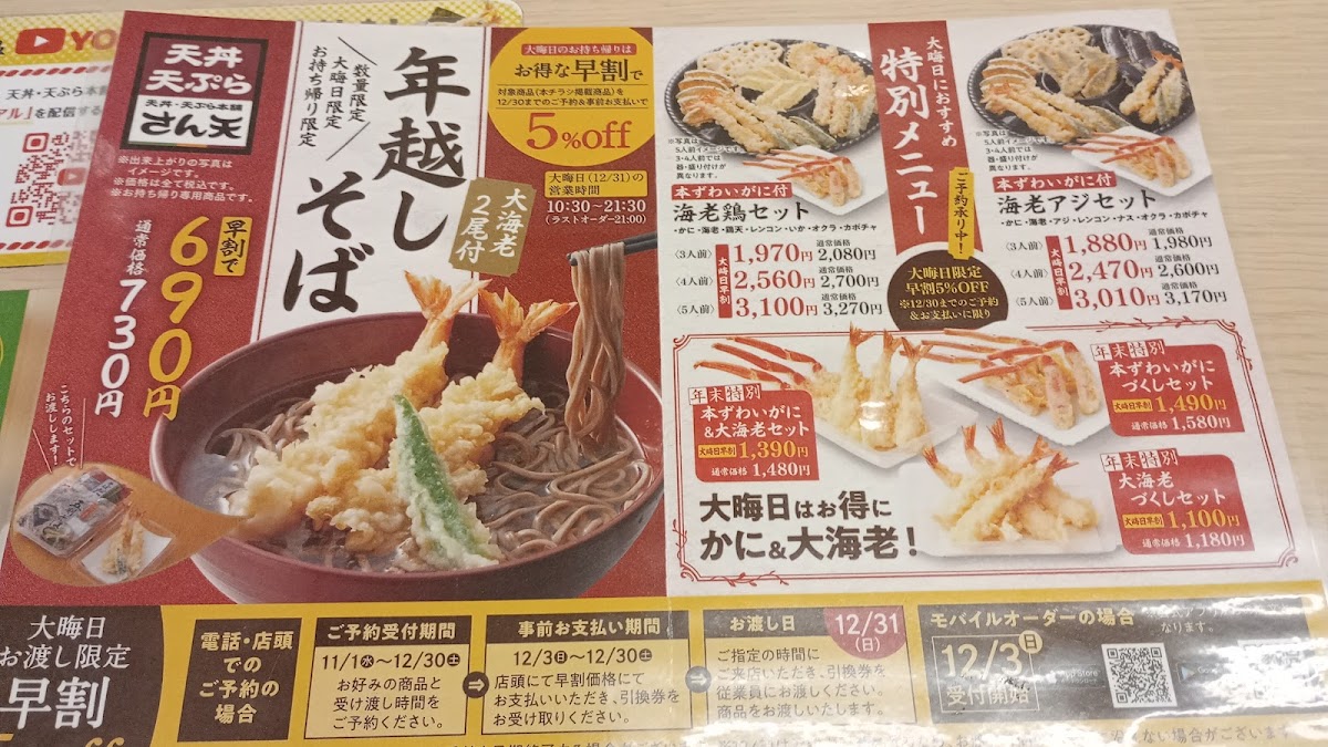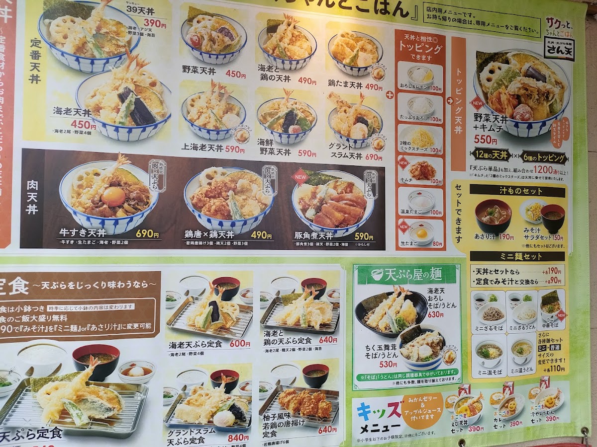 Introducing the menu at San Ten, a delightful haven for tempura lovers located in Hirakata, Osaka. This cozy eatery specializes in freshly fried tempura served atop fluffy rice, creating a delightful ten-don experience. Diners rave about the variety and freshness of tempura, featuring ingredients such as shrimp, squid, and seasonal vegetables like eggplant and okra. Each dish is complemented by your choice of dipping sauces, allowing for a customized dining experience.
